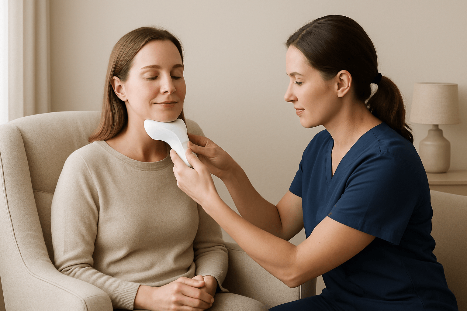Shortly after your treatment, you may notice mild swelling, tightness, or tenderness under the chin as your body responds and healing begins. Most clients resume daily activities within a day or two, with early improvements such as less puffiness becoming visible by the end of the first week.